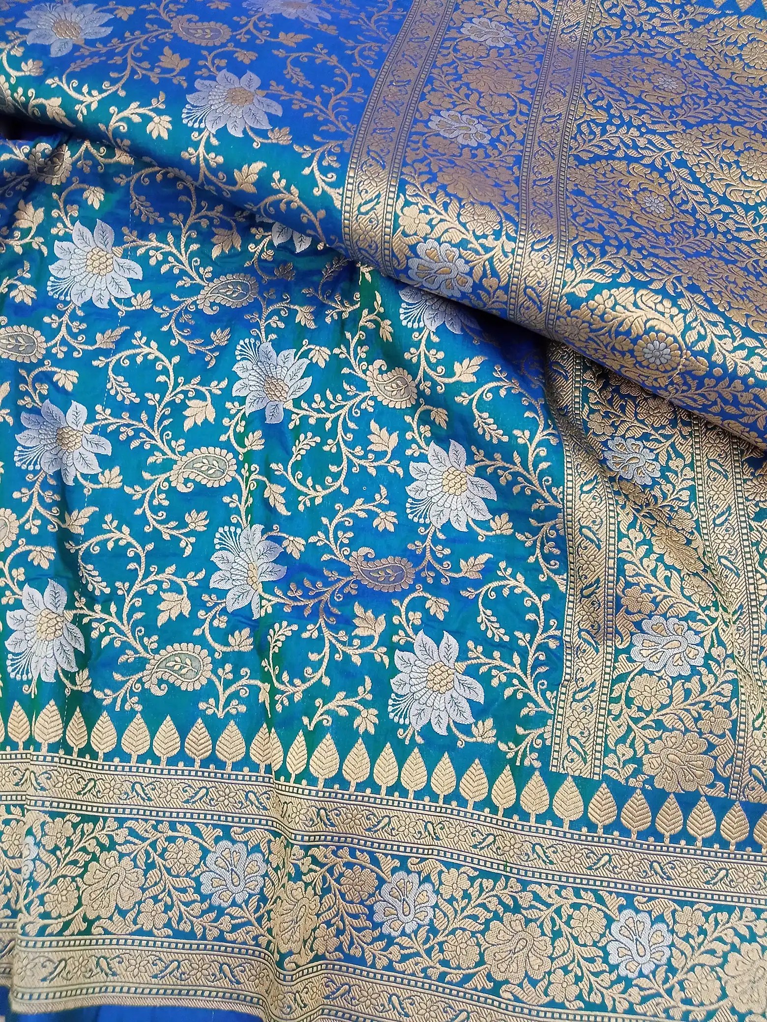 Blue Pure Katan Silk Banarasi Handloom Saree With SonaRupa – All Over Floral Jaal
