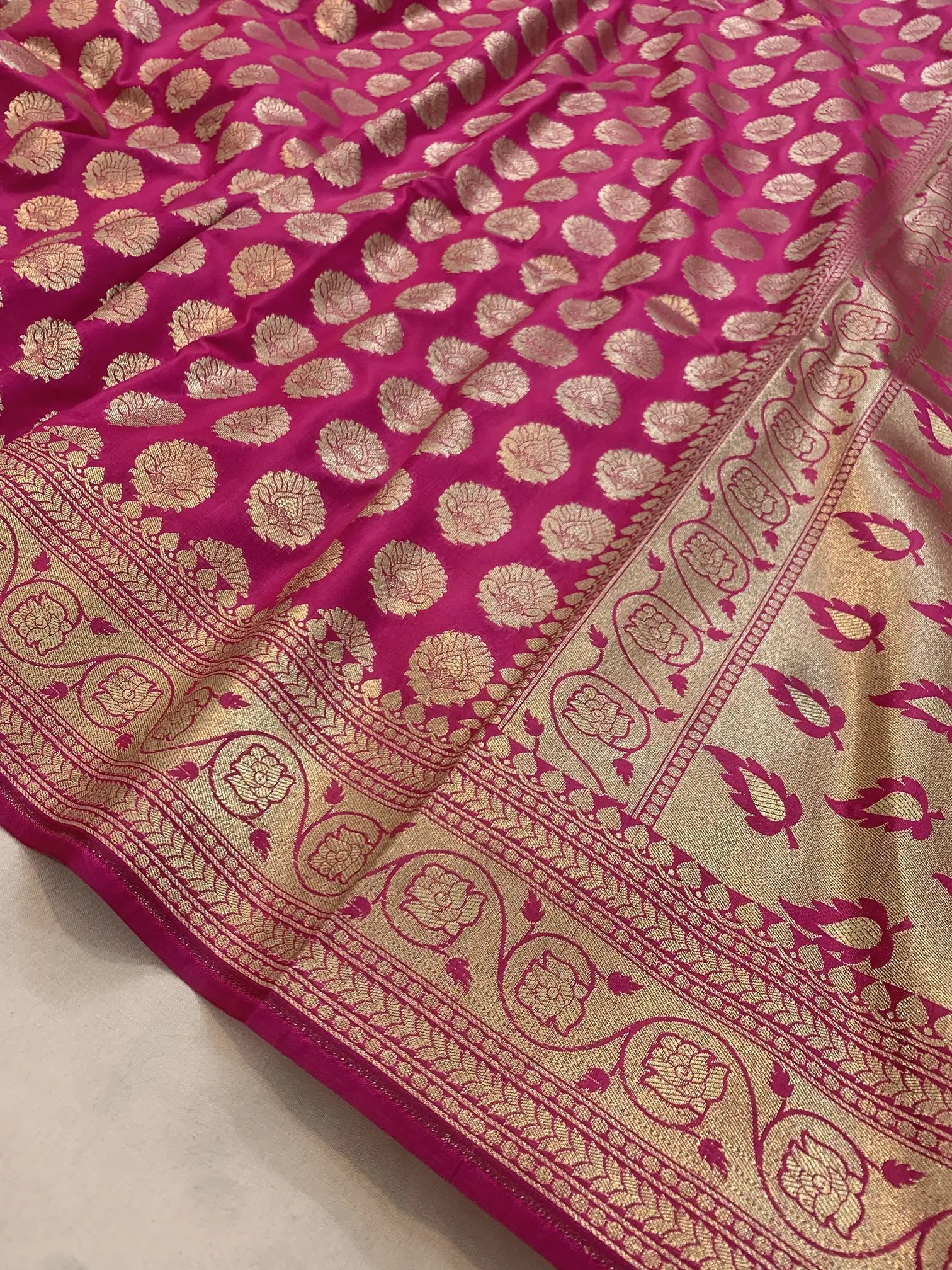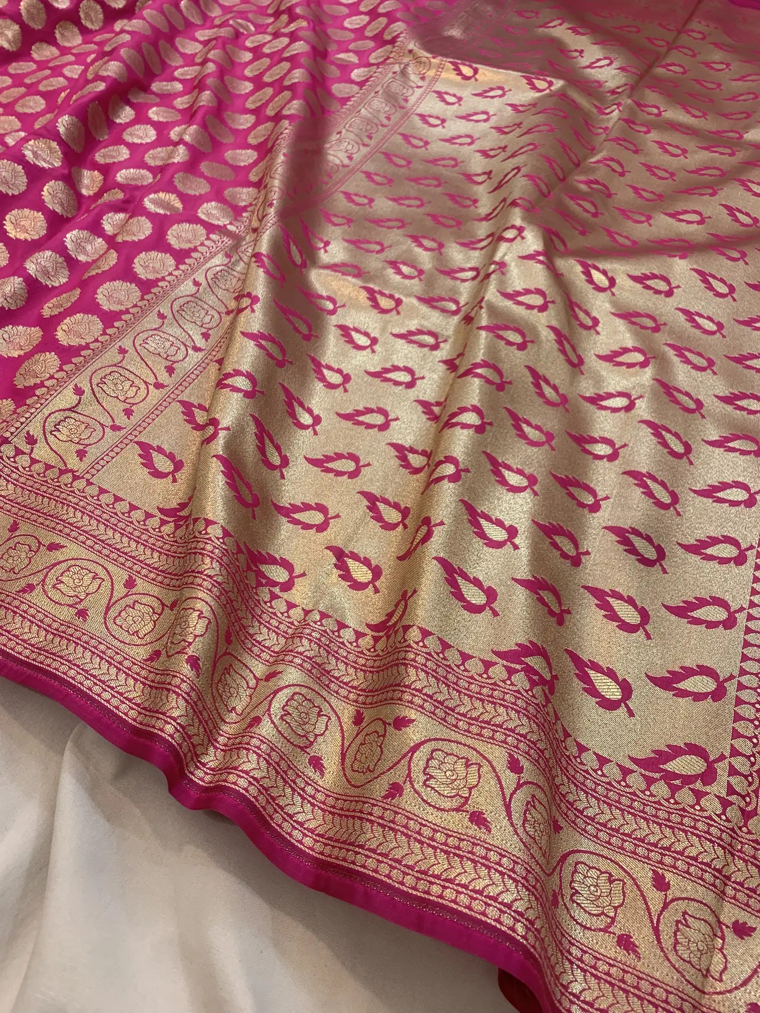 Each saree features intricate patterns of jaal & motifs inspired by age-old art of weaving, woven into the finest silk to create a luxurious and elegant drape.