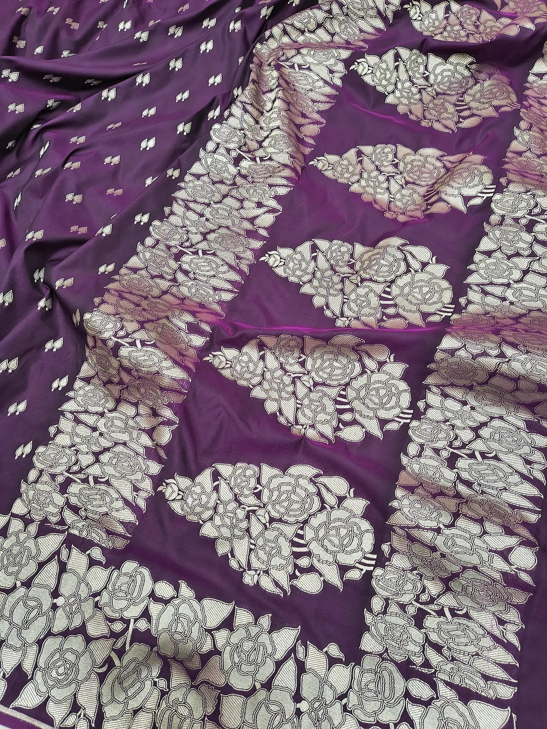 Purple Pure Katan Silk Banarasi Handloom Saree – All Over Jaal Work